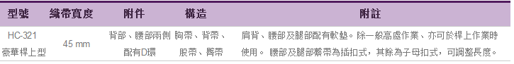 豪華型插扣式安全帶C-321參數(shù)表: